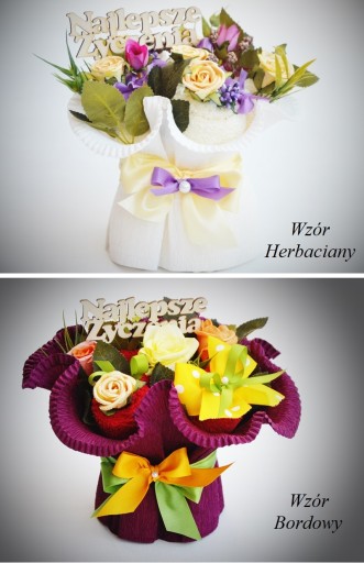 - kwiatowa dekoracja tworząca bukiet wykonana jest przez wykwalifikowane florystki przy użyciu dodatków florystycznych najwyższej jakości - wybierz wzór, który podoba się Tobie najbardziej,