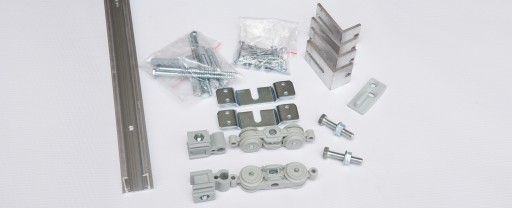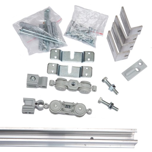 - Montowane bezpośrednio na prowadnicy aluminiowej. Śruba regulacyjna pozostaje dostępna po montażu co pozwala na bezpośrednią korektę położenia drzwi.