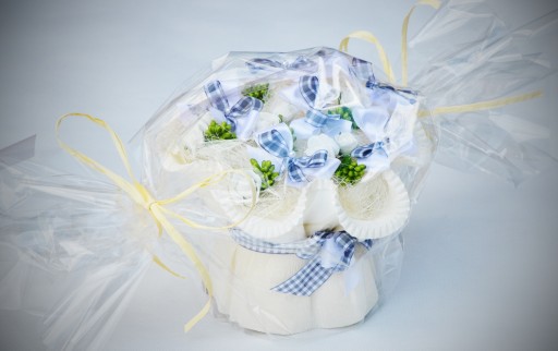 - bukiet z 3 ręczników do rąk (30x50 cm) w kolorze białym,