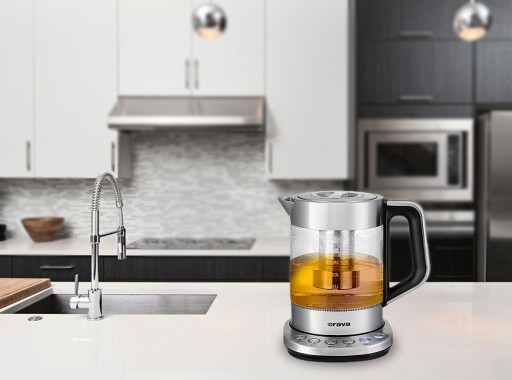 Połączenie szkła i stali nierdzewnej stworzyło nowoczesny design tego eleganckiego czajnika, który stanie się klejnotem każdej kuchni. Niezależnie od tego, czy Twoja kuchnia jest biała, brązowa czy niebieska, nowoczesna, rustykalna czy retro. Ponadczasowy design Orava VK-4000 pasuje do każdej kuchni.