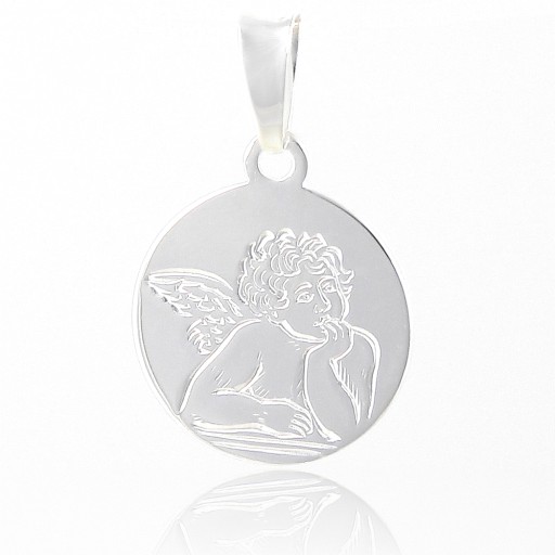 Medalik w całości wykonany jest ze srebra próby 925, z jednej strony jest wizerunek aniołka, a z drugiej strony możemy wykonać grawer laserowy w kolorze czarnym do 20 znaków.
