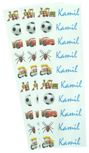 WODOODPORNE NAKLEJKI z nadrukiem kolorowym lub czarnym do nalepienia na zabawki i nie tylko (bardzo trwały nadruk),