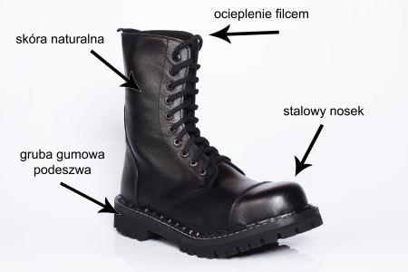 Podeszwa wzmocniona metalowymi wkrętami. Antypoślizgowa.