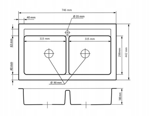 - otwory w zlewie nawiercamy bezpłatnie na życzenie klienta według wzoru