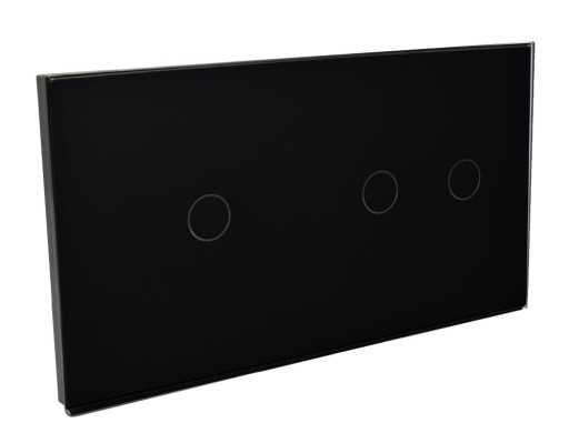 Efektowny włącznik dotykowy z podświetleniem LED ze szklanym panelem w kolorze czarnym.