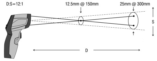 Do wykonania prawidłowego pomiaru konieczne jest, aby pole pomiarowe pirometru nie wychodziło poza przedmiot, którego temperaturę mierzymy.