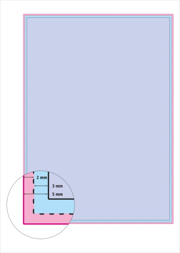 - Pole bezpieczne: tekst oraz ważne elementy np. logo powinny znajdować się w tym obszarze (-3 mm z każdego boku od rozmiaru netto).