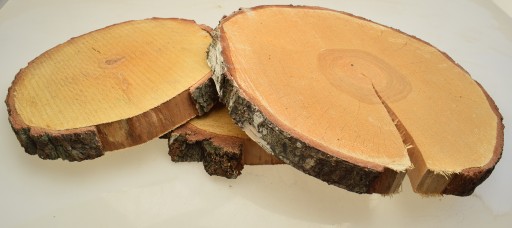 Plaster drewna brzozowego o średnicy 28-38 cm, grubość 3,5 cm.
