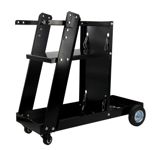 Wózek do spawarki o solidnej, metalowej konstrukcji. Wykonany z wysokiej jakości stali wytrzyma obciążenie max. 40 kg. Umiejscowiona pod kątem górna półka, na której można umieścić spawarkę, pozwoli na lepszą kontrolę, a dwie pozostałe półki zapewnią miejsce na potrzebny osprzęt.