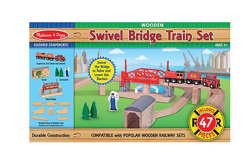 MELISSA AND DOUG DREWNIANA KOLEJKA DUŻY ZESTAW ZE ZWODZONYM MOSTEM (704)