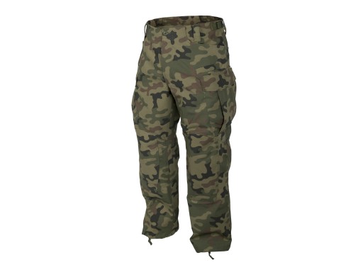 Spodnie wykonano z wysokiej jakości materiału PoliCotton RipStop (60% bawełna, 40% poliester), który charakteryzuje się dużą wytrzymałością na przetarcia i rozdarcia, a także jest lżejszy i schnie szybciej niż materiał w 100% bawełniany