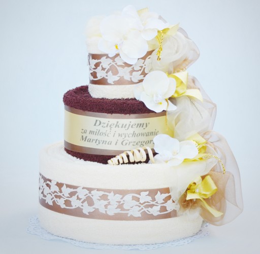 Kolory ręczników oraz dekoracji mogą nieznacznie się różnić od prezentowanych na naszych zdjęciach ze względu na indywidualne ustawienia monitorów oraz światło podczas wykonywania zdjęć. Dekoracje wykonywane są ręcznie w naszej pracowni. Zarówno odcienie wstążek, jak i kwiatków oraz ich kształt może w nielicznych przypadkach delikatnie i nieznacznie odbiegać od widocznych na zdjęciach ze względu na indywidualny charakter wykonywania dekoracji oraz zmiany w dostępnym towarze u dostawców.