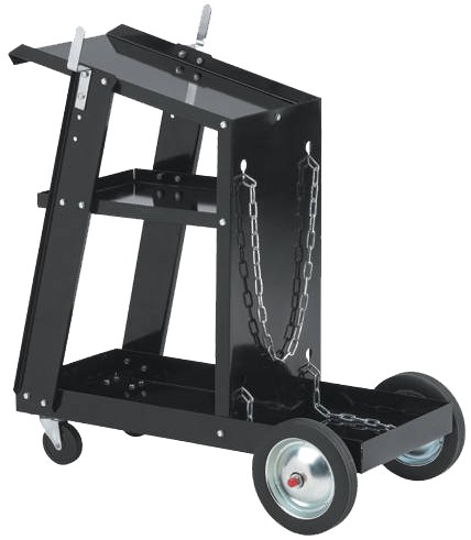 Wózek do spawarki o solidnej, metalowej konstrukcji. Wykonany z wysokiej jakości stali wytrzyma obciążenie max. 40 kg. Umiejscowiona pod kątem górna półka, na której można umieścić spawarkę, pozwoli na lepszą kontrolę, a dwie pozostałe półki zapewnią miejsce na potrzebny osprzęt.