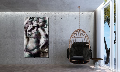 Картина ПАРА 7 - 120x70см холст телесного цвета, дизайн любовь