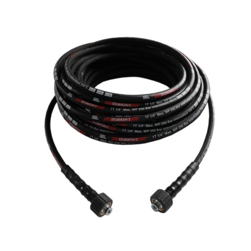 - wysokociśnieniowy przewód gumowy wzmocniony oplotem stalowym