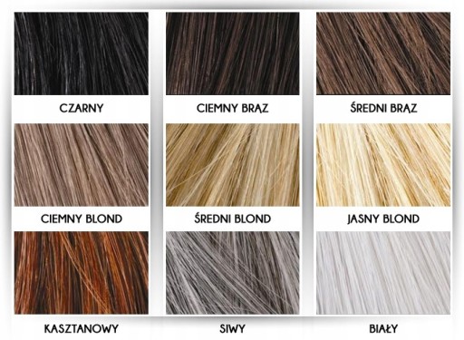 Kosmetyk GLOVIS dostępny jest w 9 kolorach. Kolory te można ze sobą łączyć aby uzyskać niemal dowolny odcień. W większości przypadków nie jest to jednak konieczne, gdyż jeśli nawet włókna GLOVIS są trochę inne niż kolor włosów, delikatnie je rozjaśnią lub przyciemnią. Włosy natomiast będą wyglądać całkowicie naturalnie. Poniżej przedstawiona została pełna gama dostępnych kolorów.