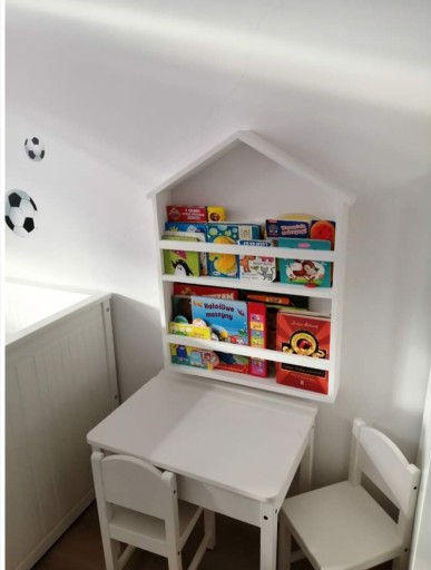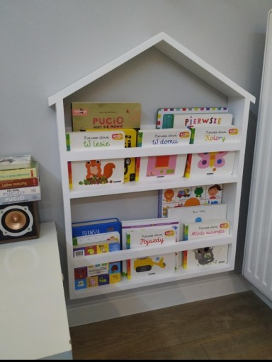 Listewki podtrzymujące książki znajdują się na wysokości 9 cm, możliwość zamontowania na innej wysokości w zależności od wielkości książeczek