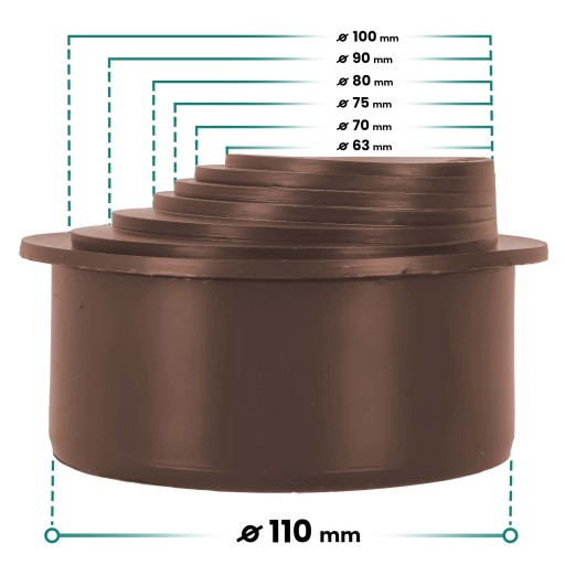 Redukcja wielostopniowa pozwala na łączenie rur spustowych z akcesoriami takimi jak czyszczaki czy osadniki oraz odzyskiwacze o średnicach 63, 70, 75, 80, 90, 100 i 110 mm.