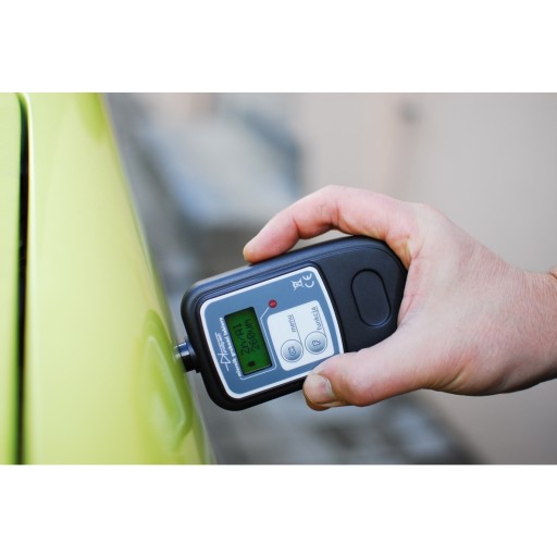Funkcja ASYSTENT LED podpowiada oceniającemu samochód czy miał on naprawy blacharsko-lakiernicze. Gdy funkcja jest włączona, miernik sygnalizuje za pomocą diody LED o stanie blacharki: - dioda nie świeci - lakier prawidłowy - dioda pulsuje - druga warstwa lakieru - dioda świeci w sposób ciągły - szpachla lub więcej warstw lakieru Grubościomierz lakieru GL-1+ jest nowatorskim rozwiązaniem, posiadającym funkcję podpowiadającą za pomocą diody LED czy lakier jest oryginalny, za gruby czy może jest szpachla. Urządzenie oparte jest na nowoczesnym, szybkim procesorze.