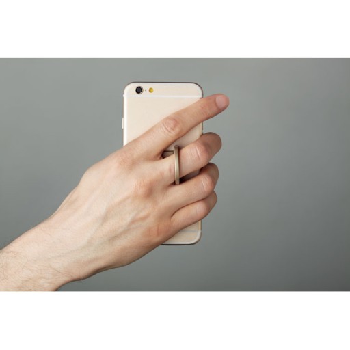 Uchwyt na telefon zakładany na palec, z cynku. Mocowany za pomocą warstwy samoprzylepnej 3M.