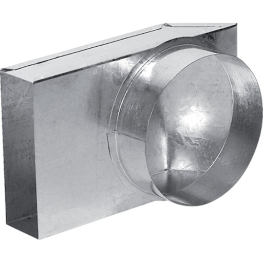 Przejście z kanału 150x50 mm na rurę o średnicy 125 mm pod kątem 90°. Może także stanowić element systemu dystrybucji gorącego powietrza lub element doprowadzający zimne powietrze pod kominek.
