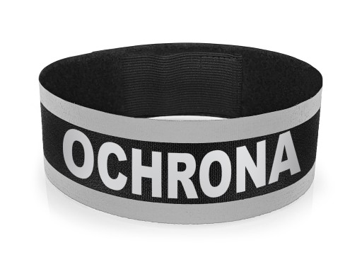 OPASKA ODBLASKOWA NA RAMIĘ Z GUMKĄ z napisem odblaskowym "OCHRONA"