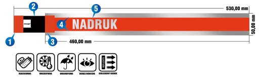 ✅ 1. uchwyt do zapięcia z taśmy rzepowej ✅ 2. elastyczna gumka lepiej przytrzymująca opaskę na ramieniu ✅ 3. uchwyt do zapięcia z taśmy rzepowej ✅ 4. dwa pasy odblaskowe ✅ 5. nadruk odblaskowy
