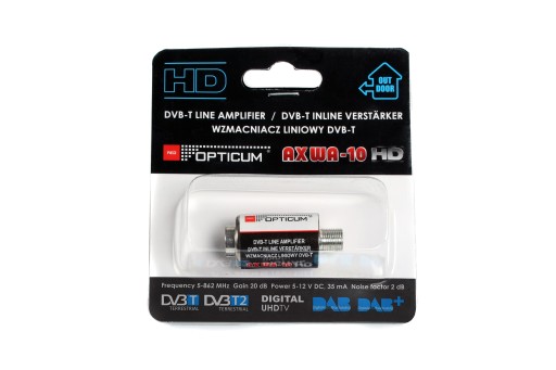 Przelotowy wzmacniacz OPTICUM AX WA-10 ma zastosowanie wszędzie tam, gdzie sygnał z anteny zewnętrznej (niewyposażonej we wzmacniacz) docierający do odbiornika jest zbyt słaby, co objawia się zacinaniem lub zanikaniem obrazu.
