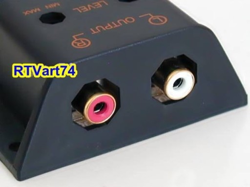 Specjalny konwerter , przeznaczony do zamontowania wyjścia RCA w każdym radiu.Konwerter podłączamy do wyjść głośnikowych w radiu, z konwertera uzyskujemy dwa wyjścia typu chinch (RCA).Do wyjść chinch możemy podpiąć każdy wzmacniacz samochodowy lub tubę aktywną ze wzmacniaczem. Konwerter posiada regulację dwoma potencjometrami. Regulowana jest siła sygnału na wyjściu RCA. Poprzez regulację możemy zwiększyćgłośność na wyjściu wzmacniacza. Konwerter można zastosować również w wielu radiach w których są już zajęte wyjścia RCA, a chcemy podłączyć dodatkowe urządzenie zewnętrzne.