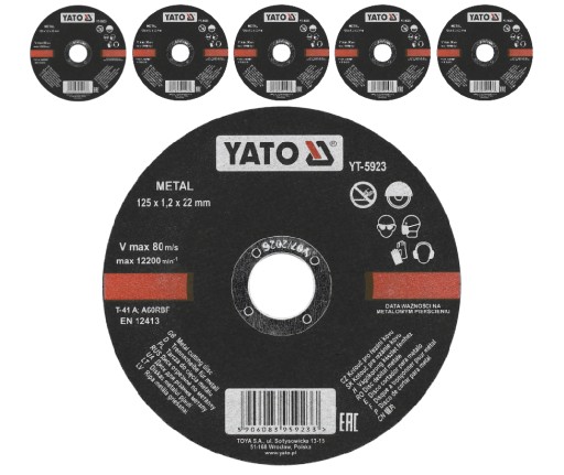 - Tarcze marki YATO zapewniają wysoką jakość użytkową dzięki zastosowaniu wyjątkowo wytrzymałych na ścieranie ziarna z tlenku glinu.