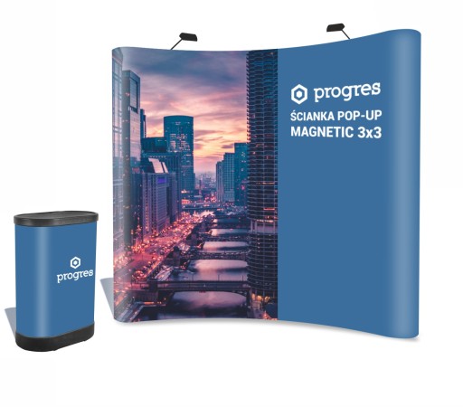ŚCIANKA POP UP MAGNETIC 3X3 Z TRYBUNKĄ + WYDRUK