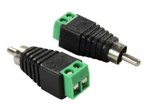 adaptacyjny konektor sygnałowy do systemów OEM - wtyk RCA (typ męski) / złącze przewodów głośnikowych do 2x2.0mm2, cena za 2 szt.