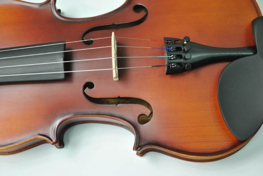 Skrzypce przygotowane do gry: ustawiona dusza, podstawek, wykonane pierwsze strojenie