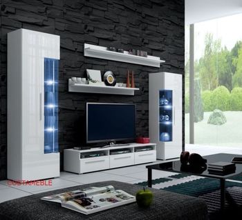 Meble wykonane z płyty wiórowej laminowanej odpornej na zarysowania, natomiast fronty wykonane z MDF pokryte powłoką akrylową dającą efekty wysokiego połysku.