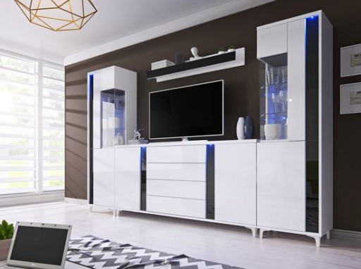 Meblościanka MARCO 4+ LED z frontami w wysokim połysku.