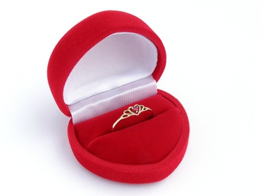 Przedmiotem aukcji jest subtelny pierścionek z motywem serca, w całości wykonany z żółtego lub z białego, rodowanego złota. W złotym serduszku oprawiony jest rubin - odwieczny symbol miłości, wierności i trwałości uczuć. Dodatkowa warstwa twardego, szlachetnego rodu zabezpiecza biżuterię przed nadmiernym rysowaniem się powierzchni i dodaje jej blasku.