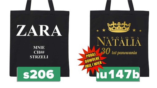 - W miejscu “Wiadomość dla Sprzedającego” podaj wybrane nazwy wzorów nadruków oraz kolor torby (np. iu147 JULIA 40 lat, nap139)