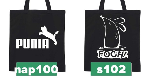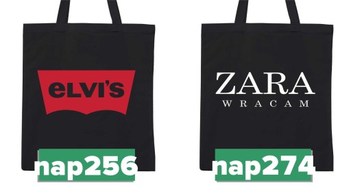 Rzeczywiste kolory nadruków i torb mogą nieznacznie różnić się od przedstawionych na zdjęciach. Jest to zależne od indywidualnych ustawień monitora.