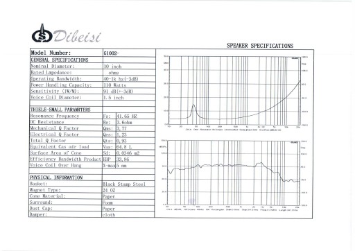 Głośnik 10 Cali / 25cm 8 Ohm Dibeisi DBS-G1002