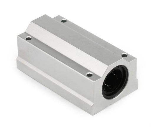 Łożysko liniowe uszczelnione, zamknięte tupu LM w obudowie aluminiowej, anodowanej z gwintowanymi otworami montażowymi. Obudowa posiada cztery nagwintowane otwory montażowe, a zastosowane łożyska są wymienne i posiadają standard wymiarowy japoński (LM)
