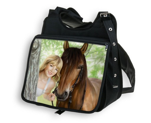 PIĘKNA TORBA Z KLAPKĄ DUŻA A4 Z NADRUKIEM - KONIE.