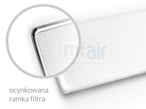 Mata obszyta na ramce z drutu stalowego ocynkowanego, co pozwala na zastosowanie filtrów w warunkach o zwiększonej wilgotności.