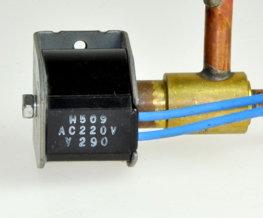 Używany, całkowicie sprawny i w idealnym stanie elektrozawór ciśnieniowy, normalnie zamknięty przeznaczony do otwierania i zamykania przepływu skroplonego czynnika chłodniczego pod ciśnieniem do 2,94 MPa. Produkt o symbolu: NEV-603DXF. Oryginalnie pracował z czynnikiem R-407C
