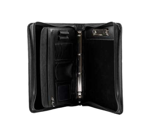 Wewnątrz biwuara znajdują się 2 przegrody, , kieszonka na zamek, miejsce na wizytówki, komórkę, prawo jazdy oraz długopisy. Posiada klips na dokumenty A4 oraz mechanizm ringowy na koszulki. Zamykana na dobrej jakości zamek błyskawiczny.