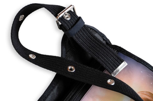 POSIADA DŁUGI REGULOWANY PASEK O MAKSYMALNEJ DŁUGOŚCI 150 CM.