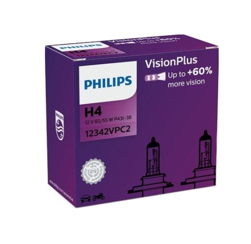 Żarówki samochodowe Philips VisionPlus emitują o 60% więcej światła, dzięki czemu kierowca widzi dalej, co pozwala zwiększyć bezpieczeństwo i komfort prowadzenia. Żarówki VisionPlus to wysoka wydajność i doskonała wartość - to właśnie tego szukają wymagający kierowcy.