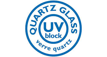 Szkło kwarcowe odporne na działanie promieni UV jest wytrzymalsze niż szkło twarde i charakteryzuje się wysoką odpornością na wysokie temperatury i drgania, co eliminuje ryzyko eksplozji. Żarówki firmy Philips ze szkła kwarcowego (o temperaturze żarnika 2650ºC i temperaturze szkła 800ºC) są w stanie znieść znaczne skoki temperatury. Możliwość uzyskania zwiększonego ciśnienia w żarówce sprawia, że szkło kwarcowe odporne na działanie promieni UV emituje mocniejsze światło.