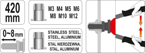 РУЧНОЙ ЗАКЛЕПОЧНИК ДЛЯ ЗАКЛЕПОЧНОЙ ГАЙКИ M3-M12 YATO