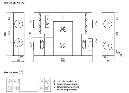 Strumienie powietrza doprowadzanego i wywiewanego są całkowicie od siebie oddzielone, dlatego bez żadnych obaw można wykorzystać ciepło odzyskane z powietrza wyciąganego.