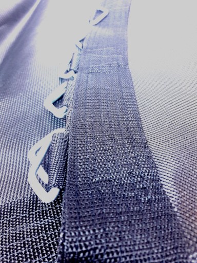 Mata jest wykonana z tkaniny polipropylenowej, wyprodukowanej na licencji USA (gramatura 280g/m.kw.), odpornej na trudne warunki atmosferyczna i promieniowanie słoneczne. Po 10 latach jest tak samo czarna, jak nowa. Jest estetycznie i perfekcyjnie wykonana. Wielokrotny, wzmocniony taśmą szew. Wytrzymałość: 150 kg. Jeśli sprężyny mają 13 - 15 cm ( z haczykami), to mata na pewno będzie pasować. Aukcja dotyczy samej maty - bez osłony sprężyn. UWAGA: Nową matę zakładamy montując najpierw co 4 sprężynę. Następnie uzupełniamy resztę.
